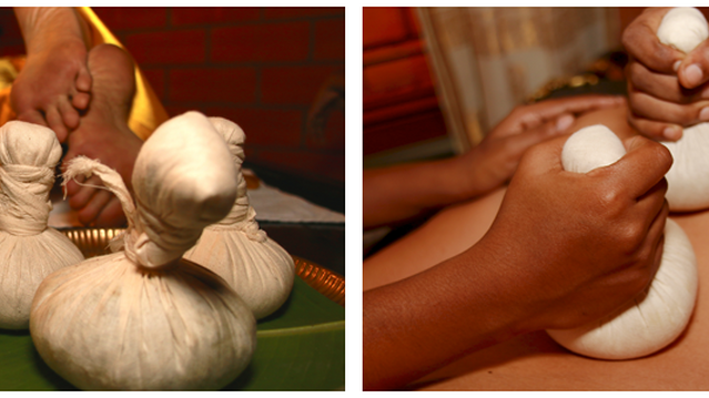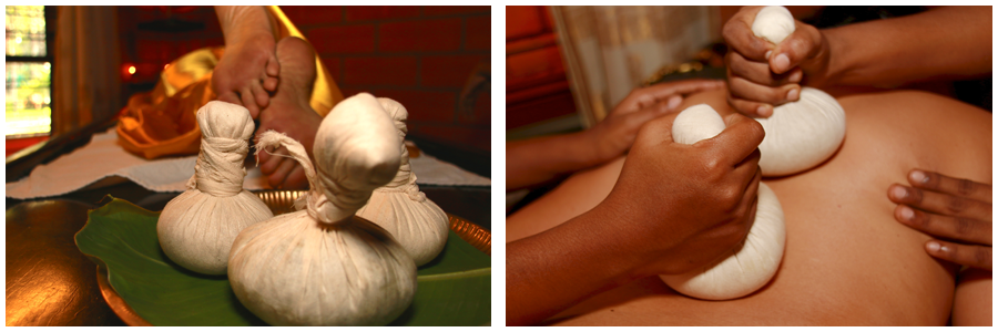 Это разновидность сведаны (суджа-терапии), при которой все тело или какая-то его часть обрабатывается лечебными листьями (лечебные листья нарезают на мелкие кусочки и обрабатывают в лечебных маслах), которые прикладывают в виде шариков, завязанных в муслиновый мешочек, и смачивают в теплом лечебном масле.Процедура проводится ежедневно в течение 45 минут в течение 7–14 дней. Также используется мелкий порошок из лекарственных трав. Эта процедура эффективна при хронических болях в спине и ревматических заболеваниях, артрите, параличе, болях и отеках в суставах, а также при истощении конечностей. Она стимулирует и укрепляет нервную и мышечную системы, улучшает кровообращение и обмен веществ, уменьшает скованность и боль, повышает тонус кожи.